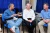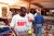 Relief workers with goods and new friends