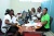 Workers hand out relief