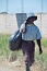 Woman picks up food bag from PADF